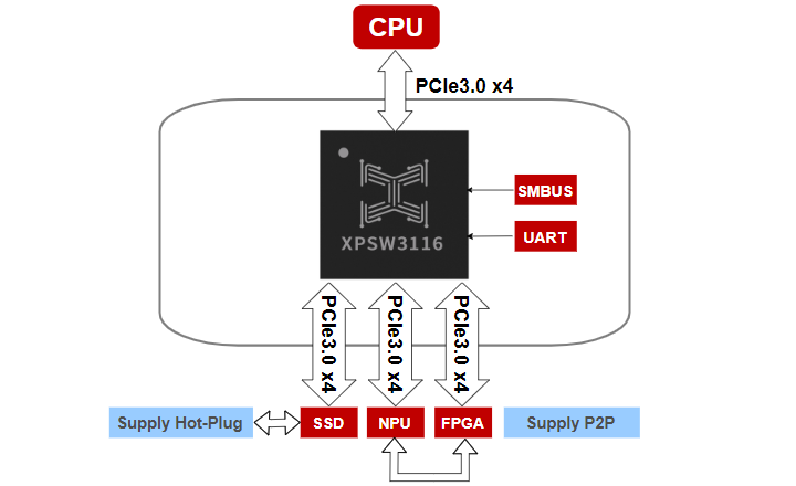 PCIe Switch芯片是一种用于扩展PCI Express总线连接能力的硬件设备,主要功能包括扩展连接性、数据交换和带宽分配,它允许多个设备通过单一PCIe端口连接到主机系统。PCIe Switch芯片广泛应用于服务器、数据中心、存储系统等领域,特别是在需要高性能和高带宽的应用场景中。